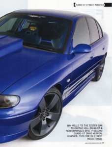 With the constant evolution of the Castle Hill Performance Race Car we created a sister car, again it is a blue VT sedan however this one is street registered! The objective was to build a road going version of the race car which we have been developing over the years. The street cat features 1000 RWHP engine/turbo combo that was handed down from the race car! Power glide transmission and the same Haltech engine management as run in the race car. This car is very similar to how the Race car started life “in the beginning”, IRS platform just a lot more power and up to date technology on board.